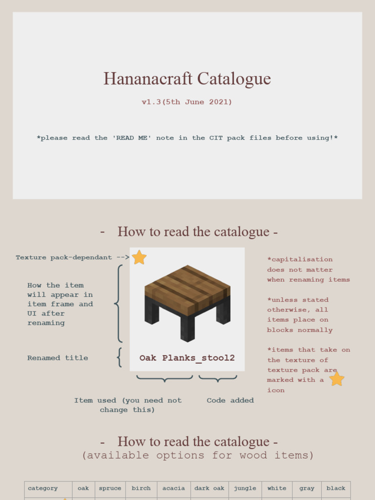 Hananacraft Catalogue
